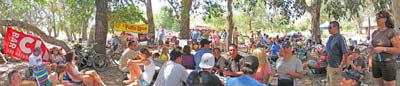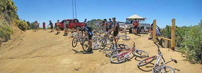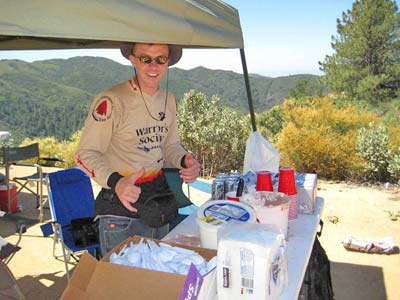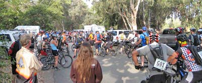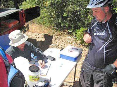 The majority of the participants negotiated the course without problems but we did have one participant, Matt Tawney, go down on the Main Divide between West Horse Thief and Trabuco. His crash resulted in a destroyed helmet, slight concussion and scratches and bruises. Other participants assisted him until he was driven to the check point at Trabuco, including participant Jose Valez who "ghost rode" Matt's bike to the check point. Safety Officer Lare-Dog did an initial analysis of Matt's injuries and transported him back to the staging area. Luckily, after later being checked out at the hospital, Matt was diagnosed with a slight concussion and emailed me the next day to let me know he'd be back on the bike (after purchasing a new helmet).