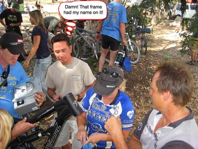 We are all grateful that Matt was not more seriously injured. We awarded Matt a pair of XT pedals for the "best crash." I told Matt in my email to him after the event that I hope he enjoys the pedals he was awarded for "the best crash" but that in the future when he participates in our events I hope the prizes he wins will be because of the scores on his game card, not the bruises on his body - and he'll at least need to have something amputated to win the "best crash" award again. (-;