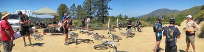 The majority of the participants negotiated the course without problems but we did have one participant, Matt Tawney, go down on the Main Divide between West Horse Thief and Trabuco. His crash resulted in a destroyed helmet, slight concussion and scratches and bruises. Other participants assisted him until he was driven to the check point at Trabuco, including participant Jose Valez who "ghost rode" Matt's bike to the check point. Safety Officer Lare-Dog did an initial analysis of Matt's injuries and transported him back to the staging area. Luckily, after later being checked out at the hospital, Matt was diagnosed with a slight concussion and emailed me the next day to let me know he'd be back on the bike (after purchasing a new helmet).